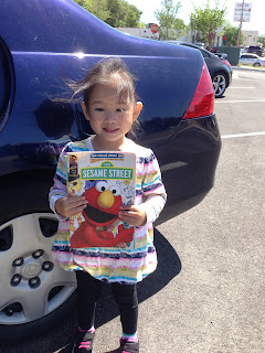 She just filled up her last sticker chart from all the poos the last couple of weeks and T took her to buy a Jack in the Box. That's been her pure motivation for the last two weeks...a silly Jack in the Box as her prize. Evidently, they stopped to look at the bikes in the toy store and he sends me a video of her riding in the store. Then all of a sudden she's changed her mind. I'm sure having a car seat on the back of the bike helped make her decision a little easier.